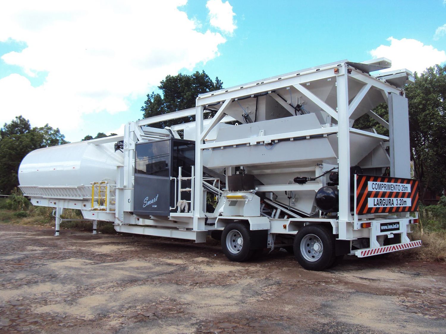 A LINTEC-IXON revolucionou o mercado de centrais de concreto móveis com o lançamento da LX CWM SMART. Central dosadora de concreto com mobilidade total e silo erigível (hidraulicamente). Central totalmente automatizada, que possibilita a emissão de ampla gama de relatórios e acesso remoto pela fábrica para verificação de falhas, diagnósticos ou atualizações do programa. É um equipamento de fácil operação e rápida instalação. Não necessita fundação, a área dos apoios assegura estabilidade em um solo nivelado e compactado adequadamente.