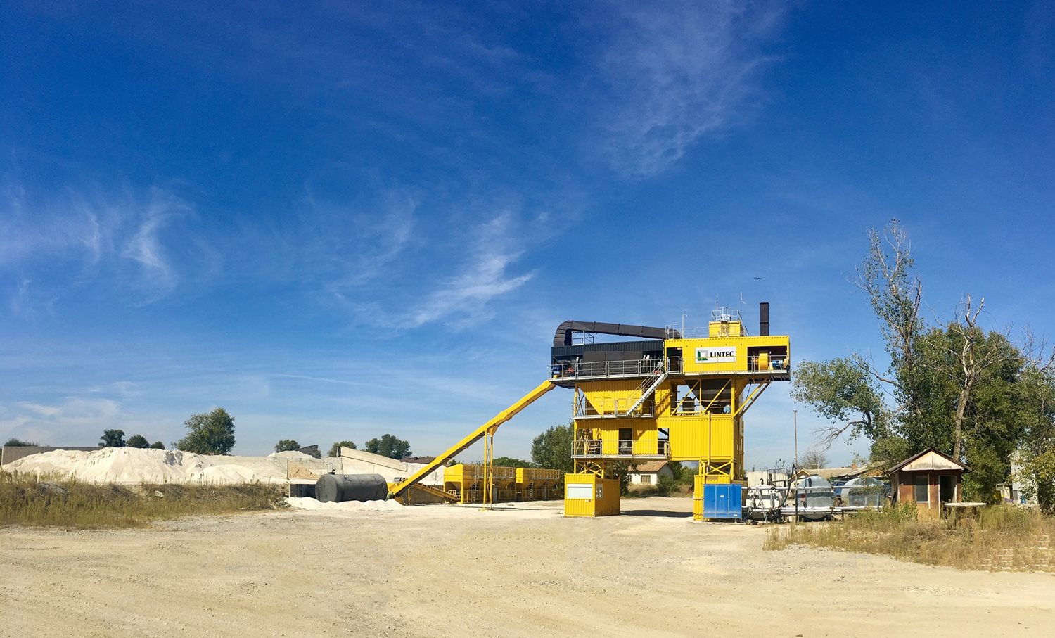 Usina de mistura de asfalto gravimétrica totalmente conteinerizada, com capacidade de 120 - 140 t/h.